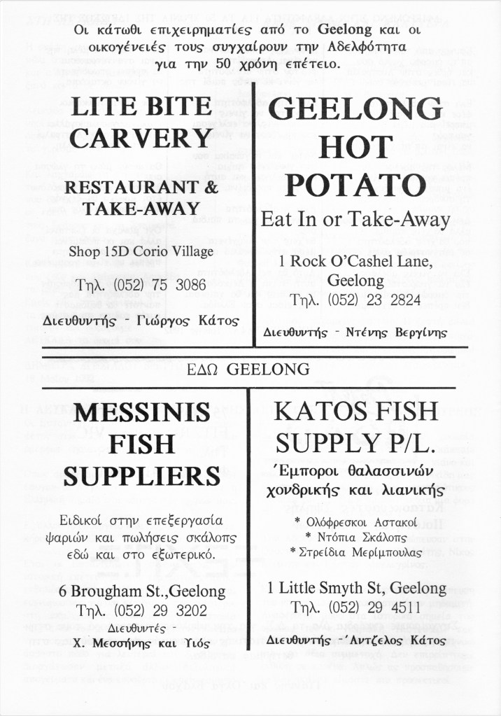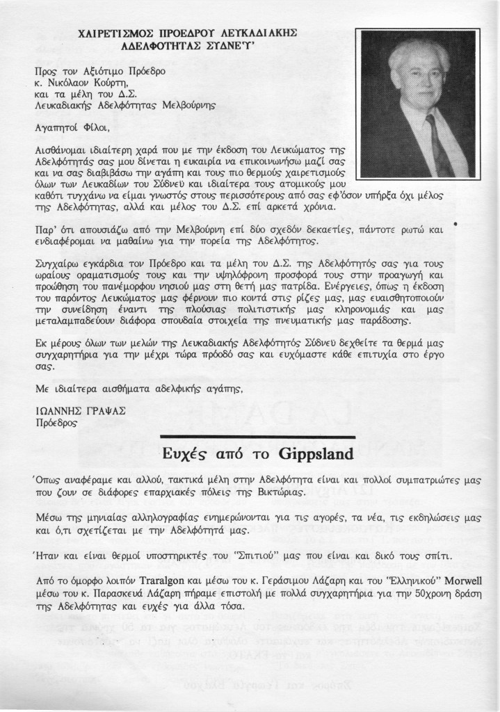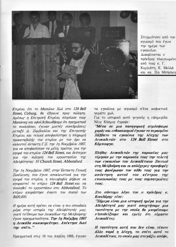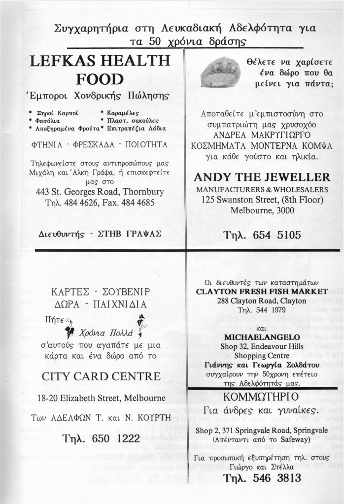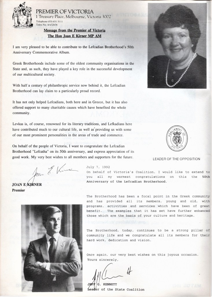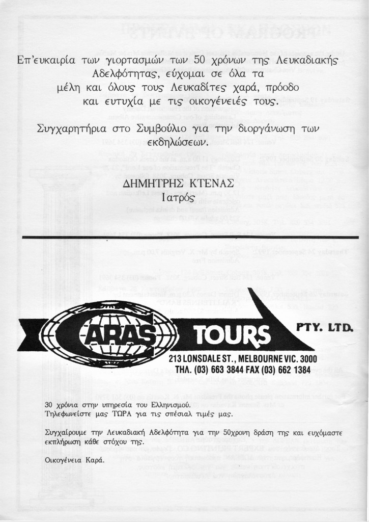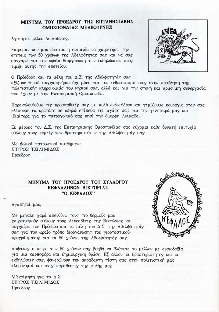 The Brotherhood 50th Anniversary Commemorative Album reflects back in 1992 upon the proud achievements of the Brotherhood leading up to (and beyond) the purchase of the hall in November 1987, the Lefkaditiko Spiti a home where all Lefkadians and Meganisians are welcome.