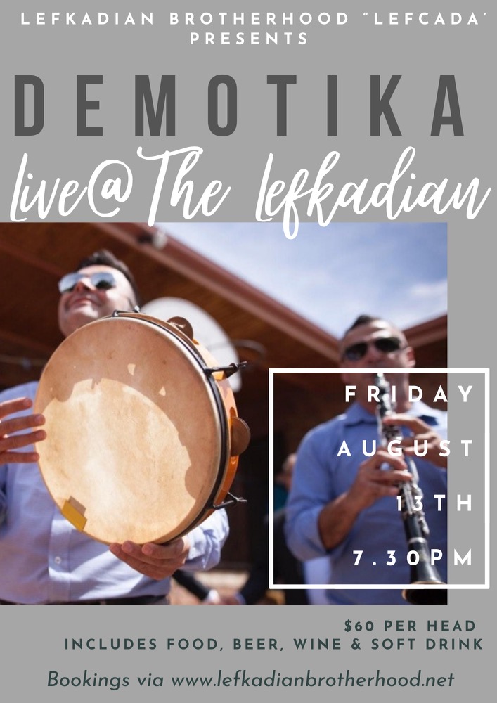 You are all invited to the Lefkadian for a night of live music, great food, drinks and glendi.